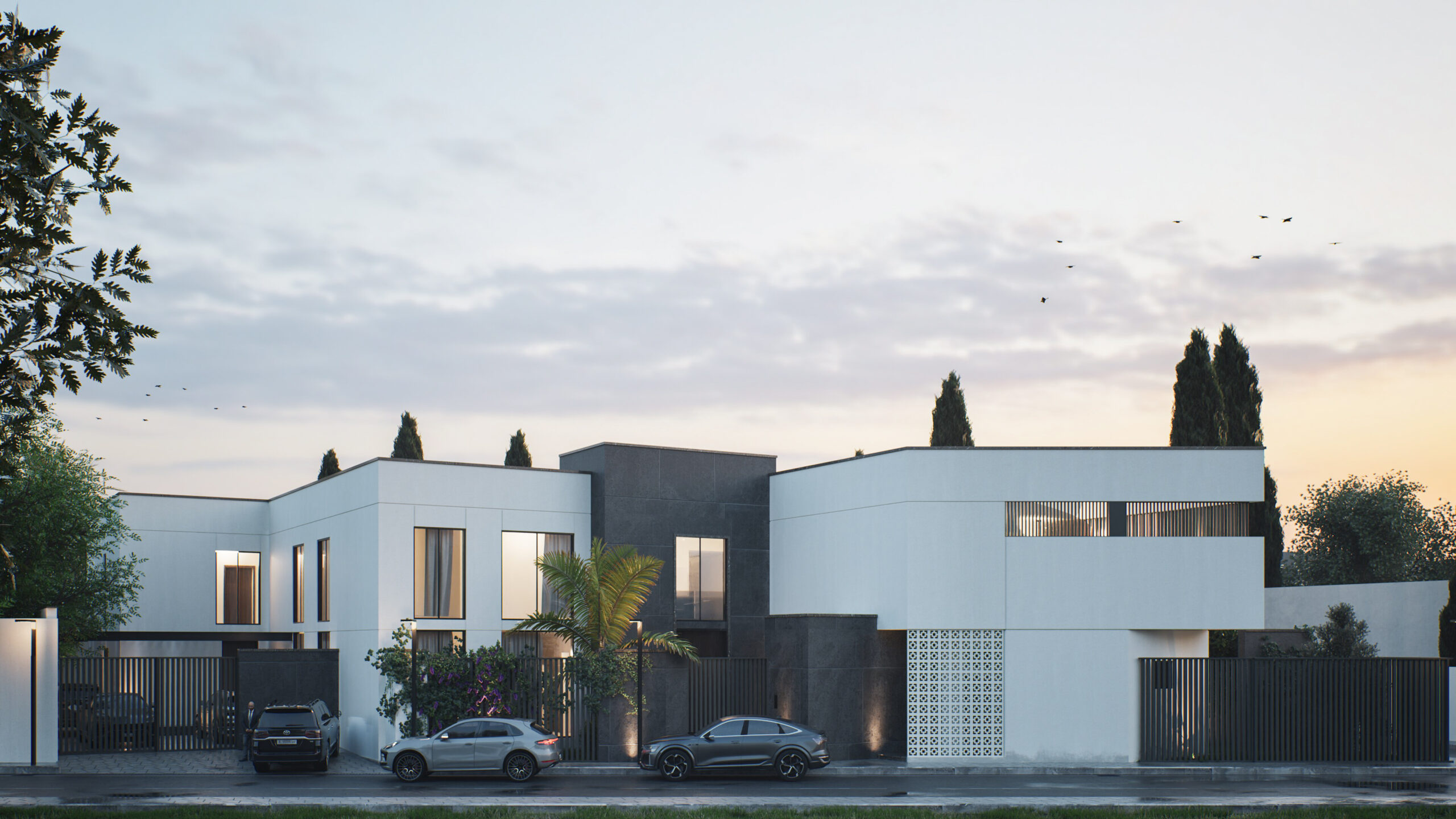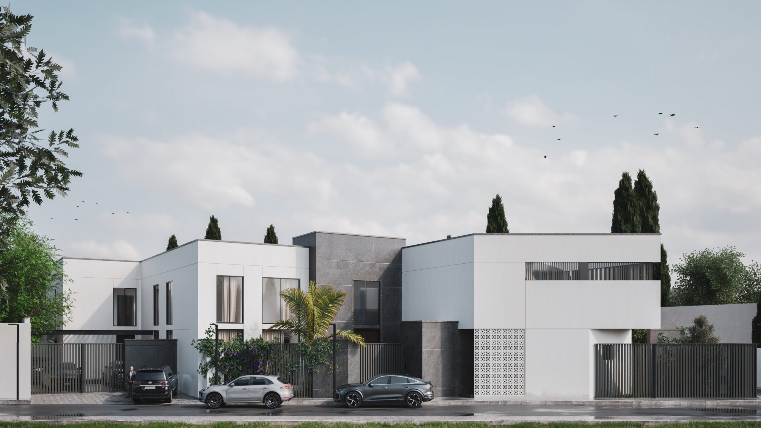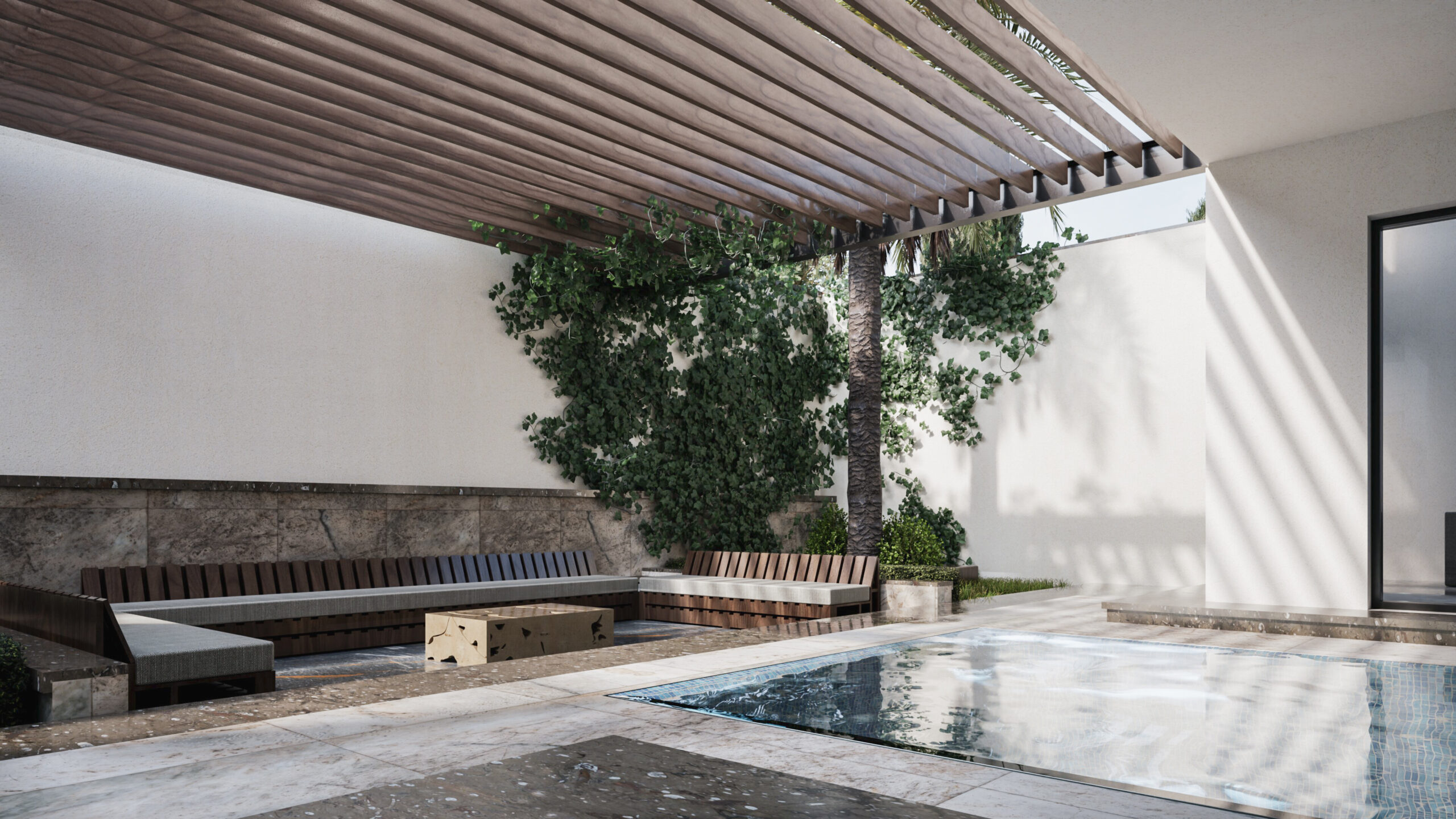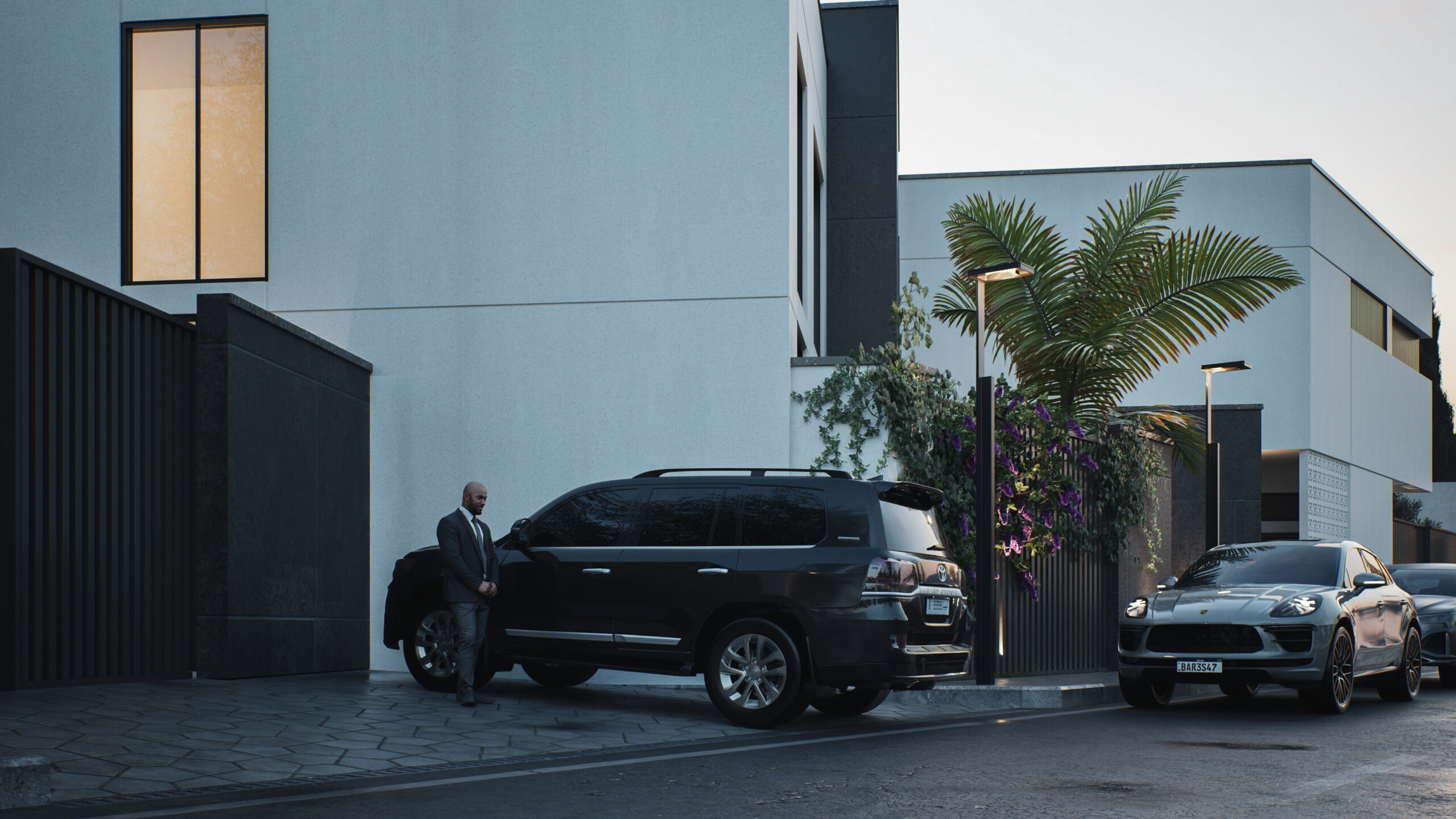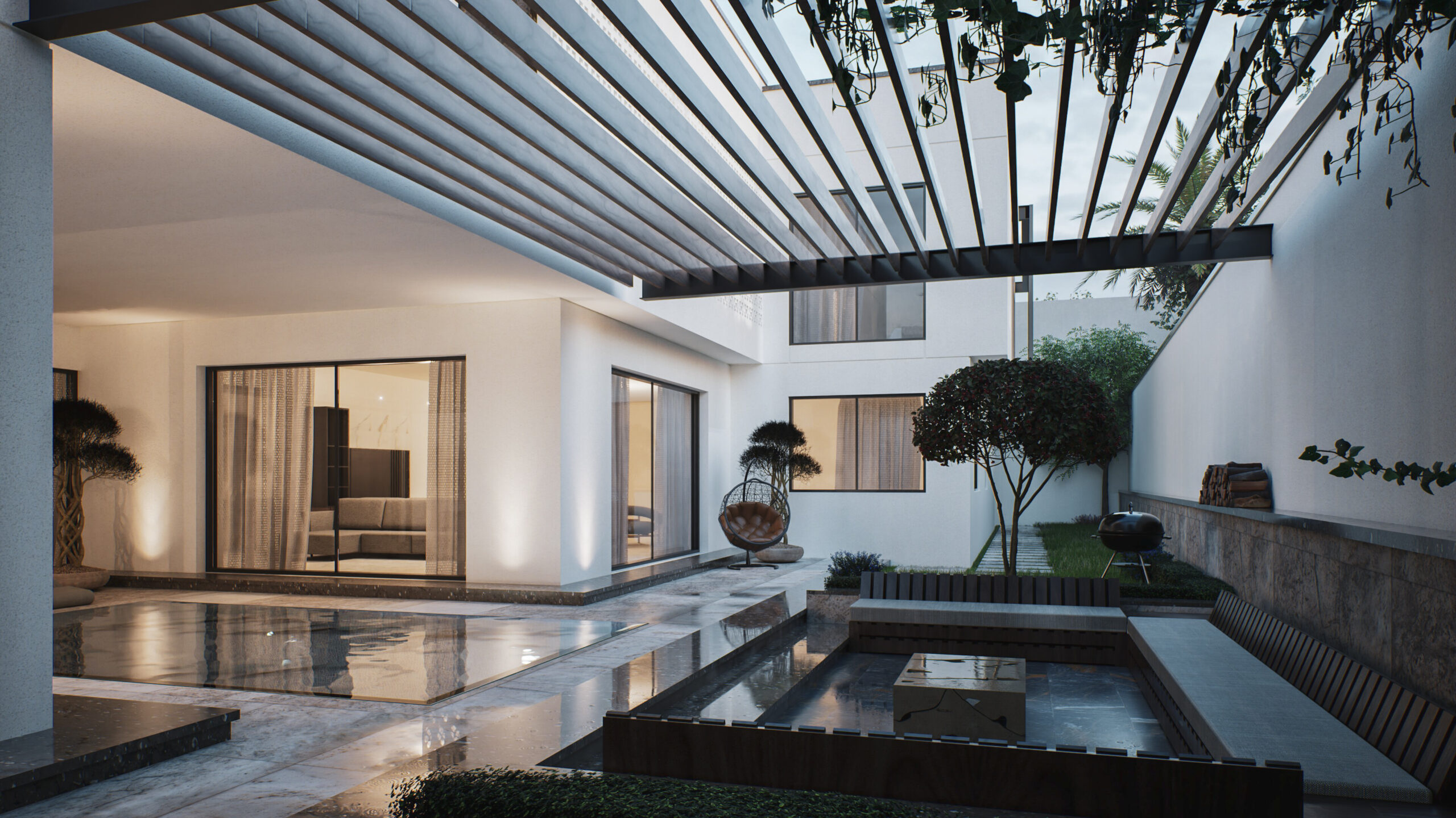 Set on a corner plot with two street frontages, Dar Al-Sarāb reads as a quiet monolith to the city and a