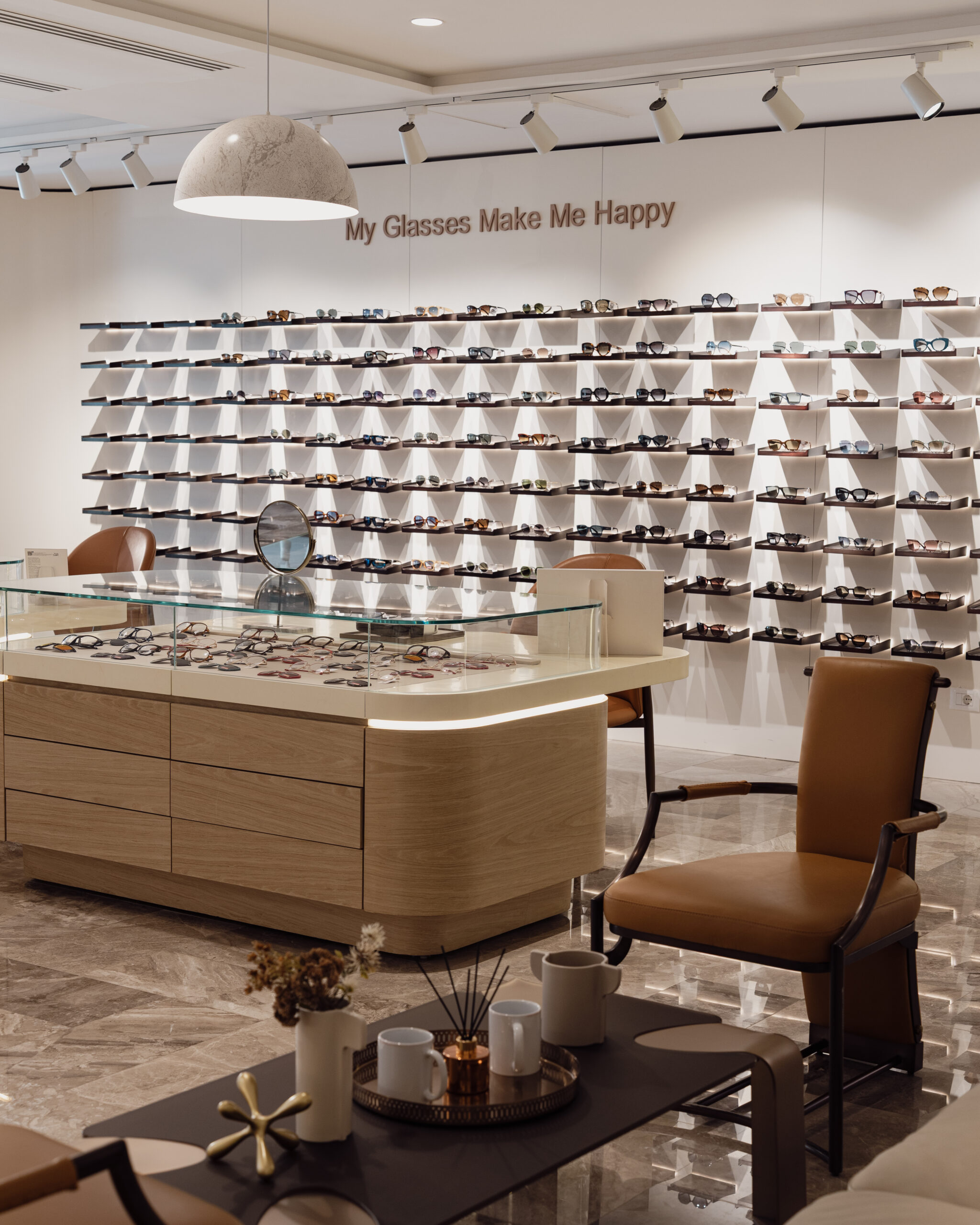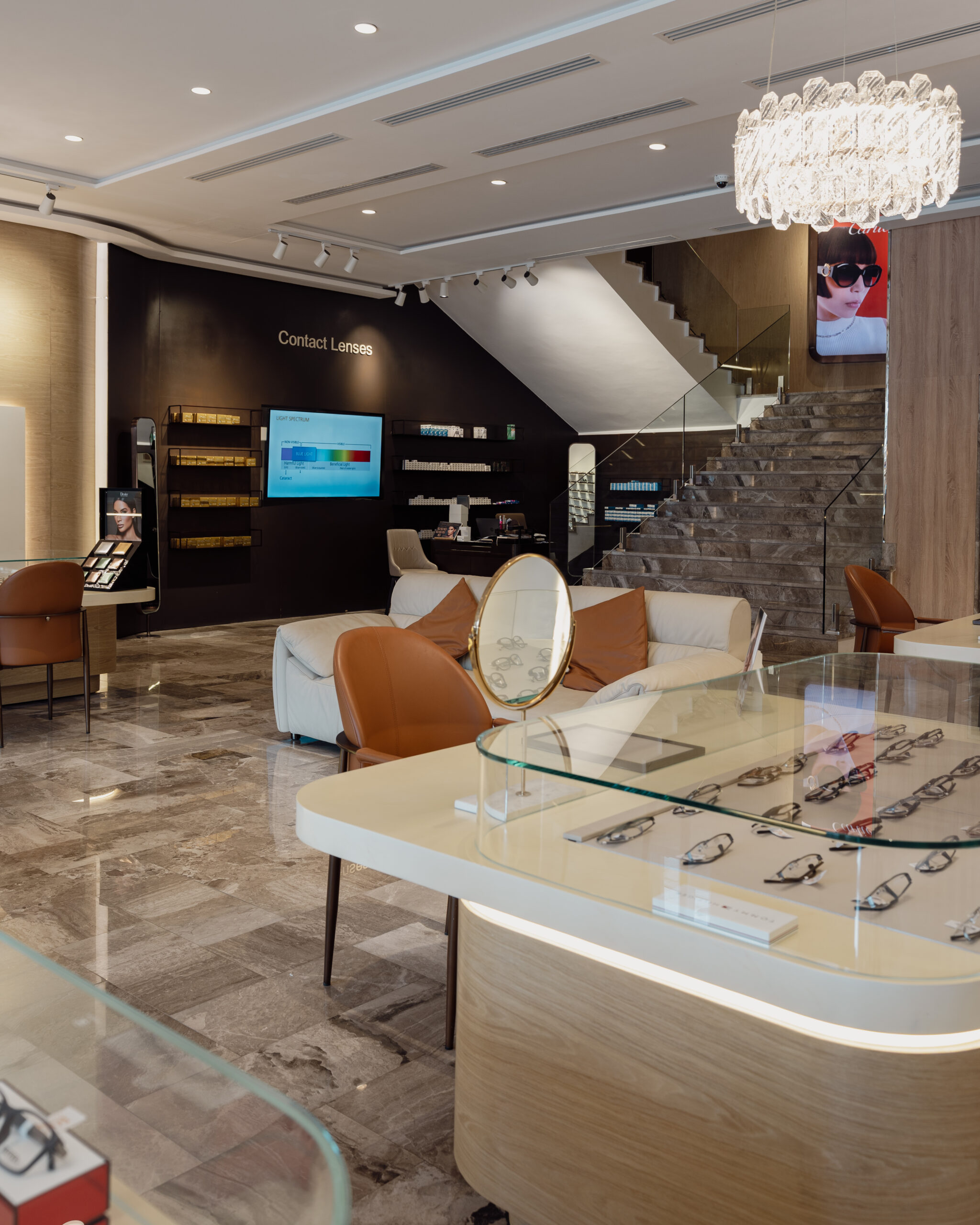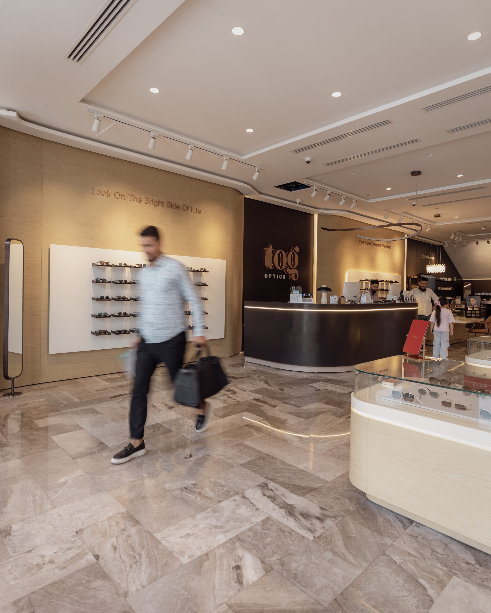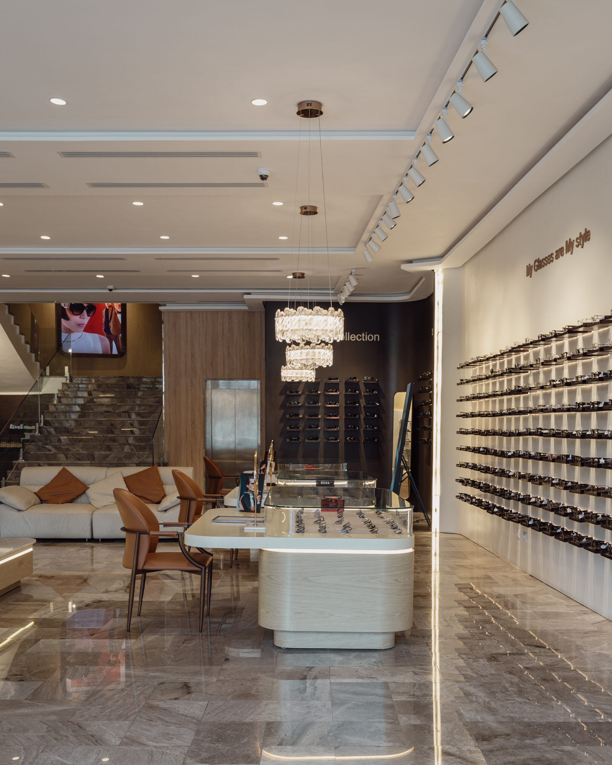 Working on the interior design for the Tripoli Optical Center was a unique opportunity. We aligned the design process with the center's rebranding, allowing us to introduce new elements that reflect the brand's spirit of renewal. The project spans two floors, showcasing both prescription and sunglasses, and offering a full range of vision products and services.