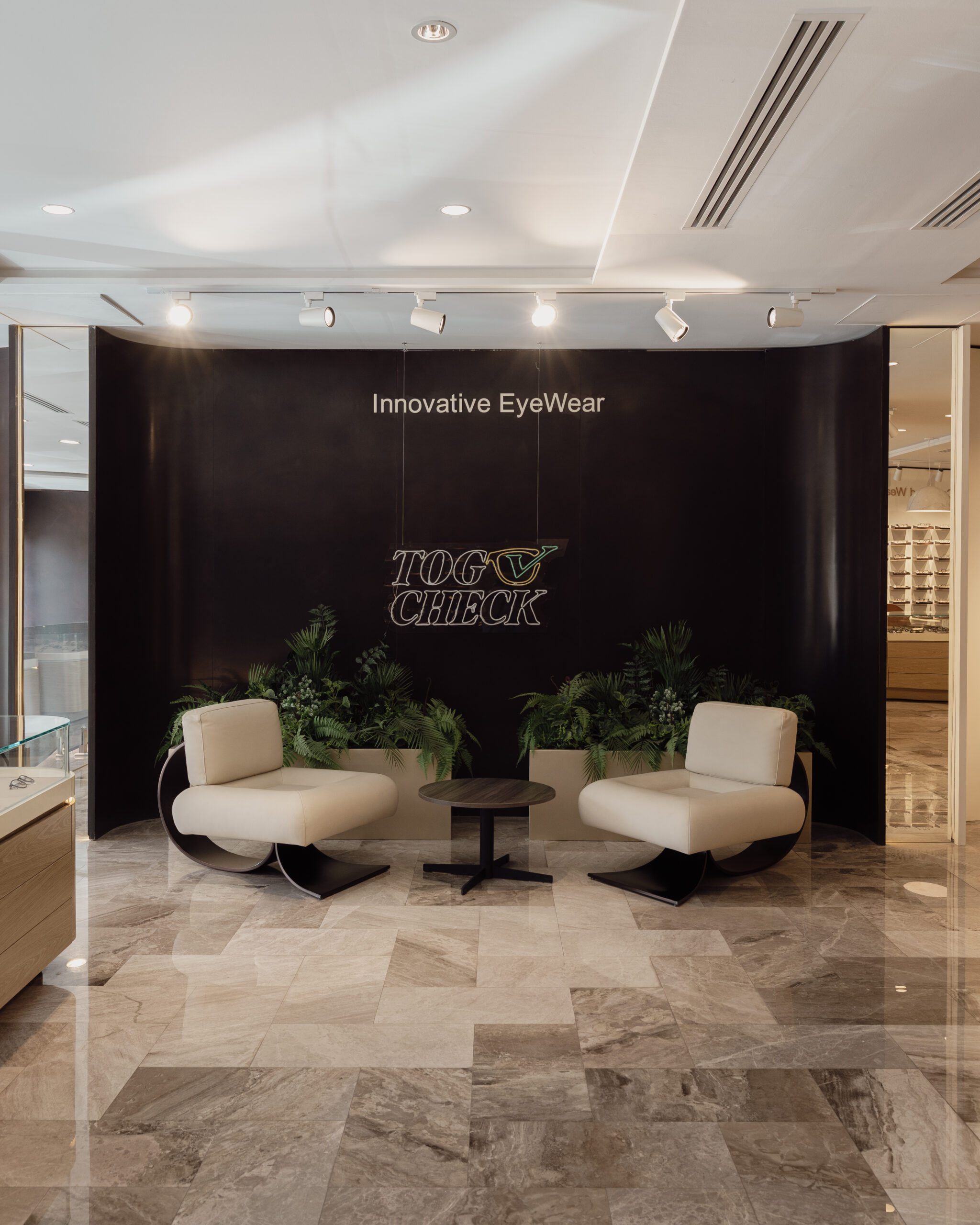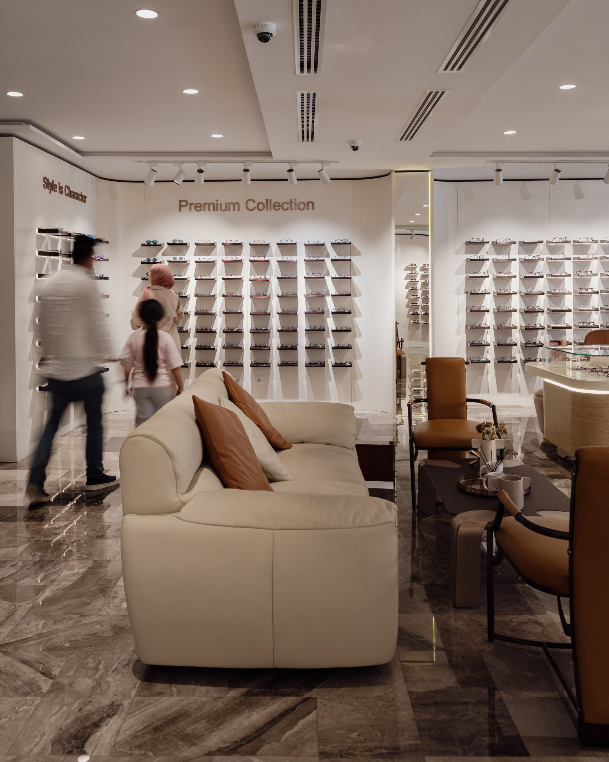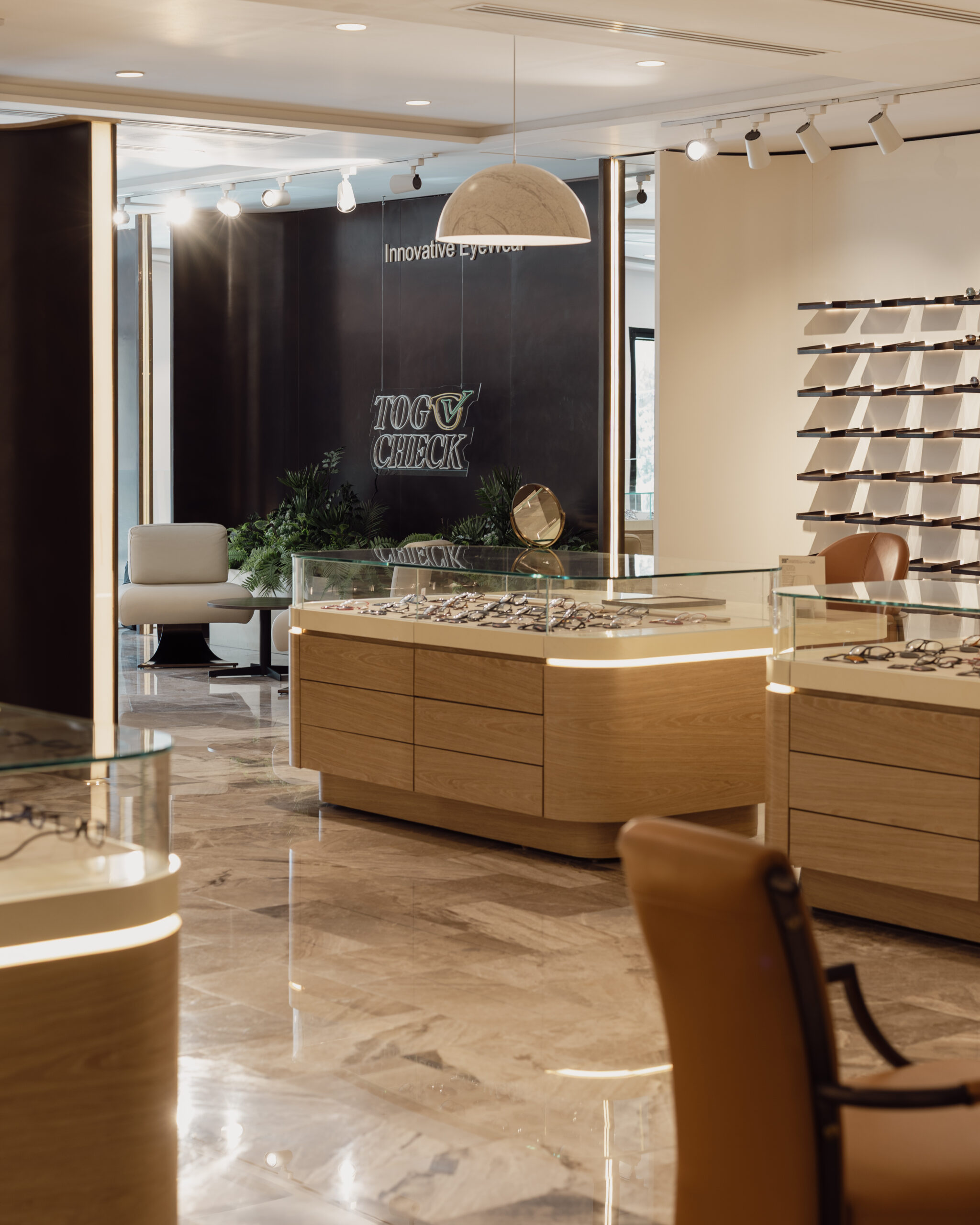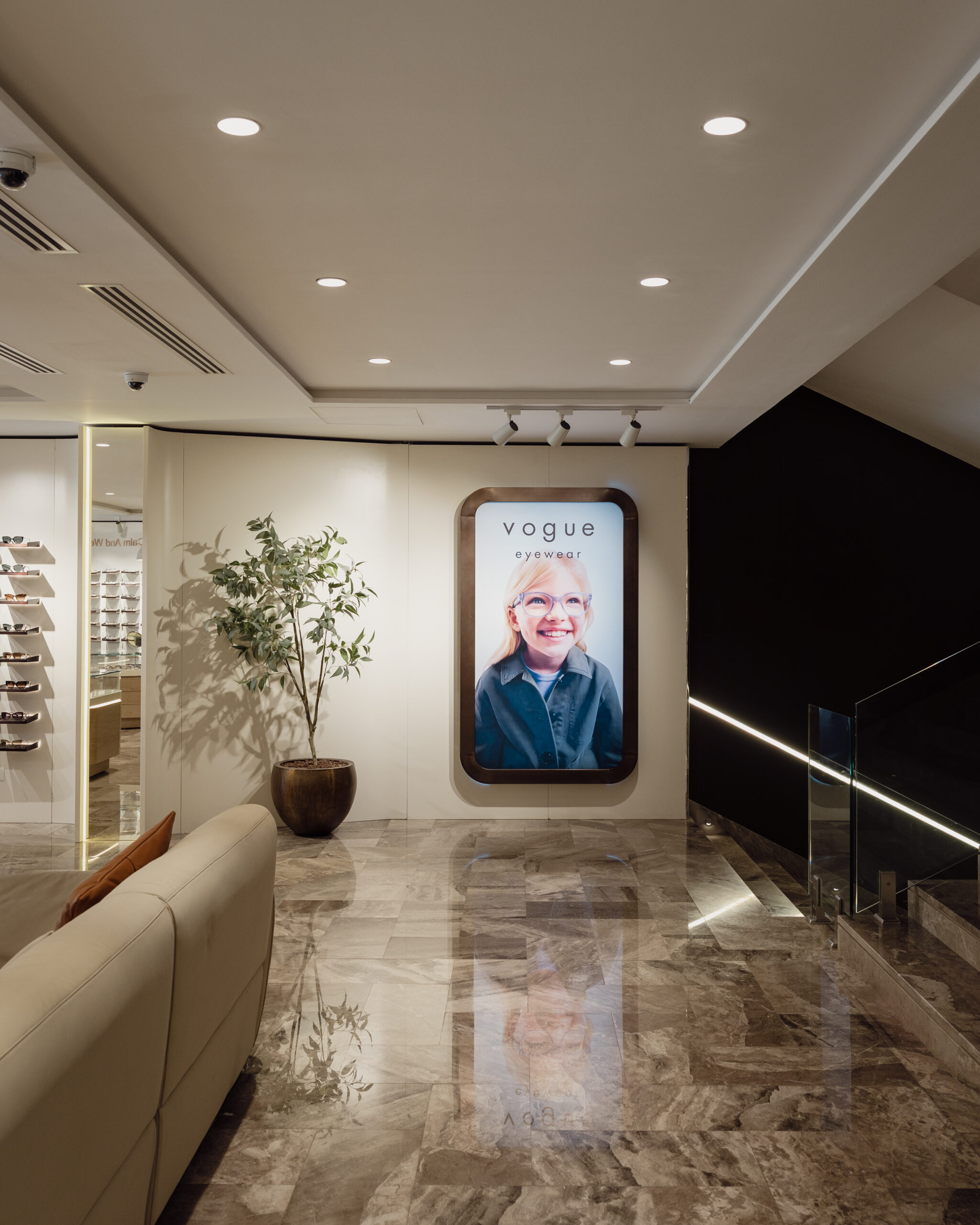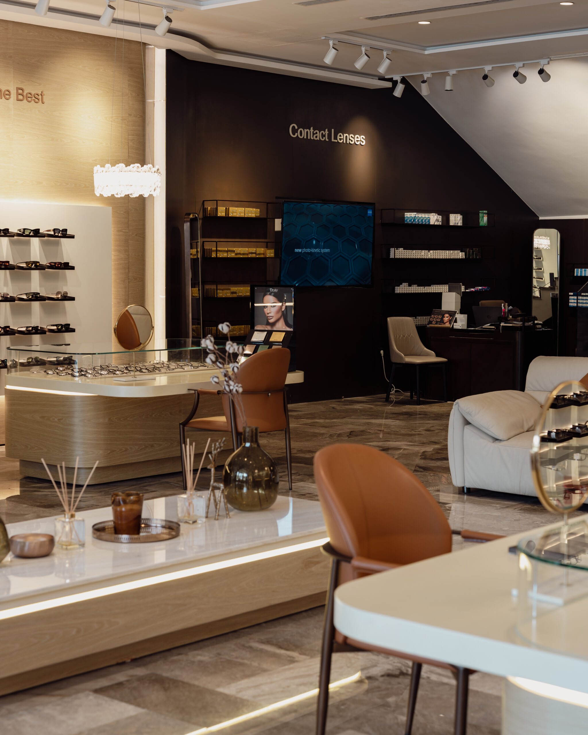 Working on the interior design for the Tripoli Optical Center was a unique opportunity. We aligned the design process with the center's rebranding, allowing us to introduce new elements that reflect the brand's spirit of renewal. The project spans two floors, showcasing both prescription and sunglasses, and offering a full range of vision products and services.